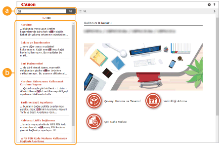Kullanıcı Kılavuzu'nun nasıl görüntüleneceğine, nasıl arama yapılacağına ilişkin bilgileri ve diğer bilgileri görüntülemek için tıklayın.