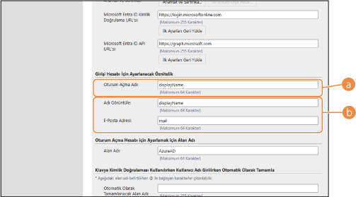 [Microsoft Entra ID Alan Ayarları] ekranı görüntülenir.