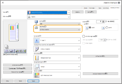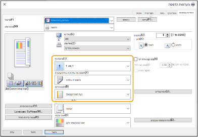 [Page Order] מוצג כאשר [Page Layout] מוגדר כ-[2 on 1] או גבוה יותר.