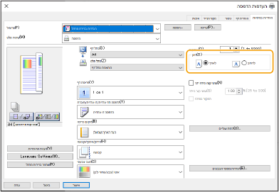 בחר בכיוון של מסמך המקור במסך הגדרות ההדפסה של היישום.