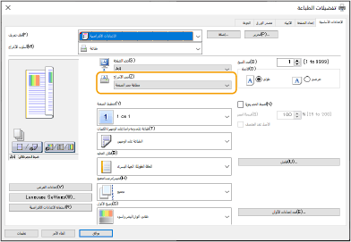 قم بمطابقة [حجم الإخراج] في برنامج تشغيل الطابعة مع حجم الورق المراد الطباعة عليه.