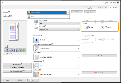 حدد اتجاه المستند الأصلي من شاشة إعدادات الطباعة للتطبيق.