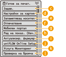 <Настройки на функции>, <Преференции> и много други настройки на устройството започват от този бутон.