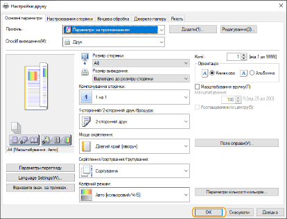За потреби вкажіть значення параметрів друку, а потім натисніть кнопку [OK].