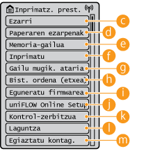 Makinan gordetako dokumentuak inprima ditzakezu eta inprimatutako lanen egoera egiazta dezakezu.