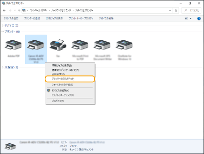 本機のアイコンを右クリックし、[プリンターのプロパティ]をクリックする