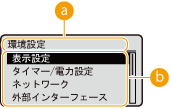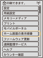 <ホーム画面の表示順番>を選ぶと、ボタンを並べ替えて、<ホーム>画面をカスタマイズすることができます。ディスプレーをカスタマイズする ![]() 「電源を入れた直後の画面」、「用紙やトナーの残量に関するメッセージ」など、画面表示に関する各種設定を変更することができます。<表示設定> 一定時間操作しなかったときに表示される画面を設定することができます。<オートクリア後の機能> |