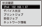 (状況確認)を押すと、<状況確認>画面が表示されます。印刷の動作状況だけでなく、トナー残量や用紙残量など本体に関わる情報も確認することができます。