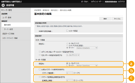 本機能で登録されたユーザーでは、キーボード認証でのログインはできません。サーバーのユーザー情報を使ってキーボード認証でもログインをしたい場合は、キーボード認証の認証先で、サーバーを指定してください。