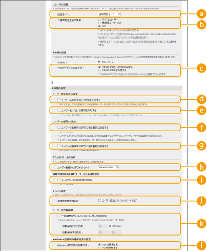 ユーザーのログイン方法、認証先、その他の認証機能をお使いの環境や用途に合わせて設定します。