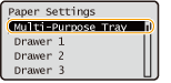 You can register default paper settings for the multi-purpose tray. Registering default settings can save yourself the effort of having to specify the settings each time you load the same paper into the multi-purpose tray.