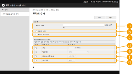 IPP 인쇄에 자주 사용되는 설정을 사전 설정으로 등록할 수 있습니다.