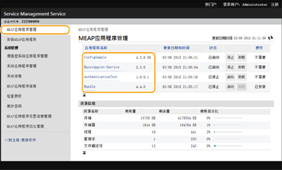 单击[MEAP应用程序管理],然后单击应用程序以管理授权。