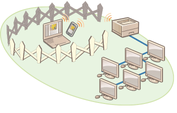 除了与有线局域网或无线局域网的单一连接外,本机还可通过 USB-LAN* 适配器实现有线局域网和无线局域网以及有线局域网和其他有线局域网的双网环境。这样在员工使用主线路和客户使用功能受限的子线路时,就可以轻松构建网络环境。同时还可以降低成本,因为不需要为每个网络环境都安装一台机器。