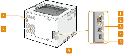 在此处使用MEAP应用程序或IC卡读卡器连接USB设备。此外,打印存储文件或导入/导出本机设置时,请在此处连接 USB 存储设备。