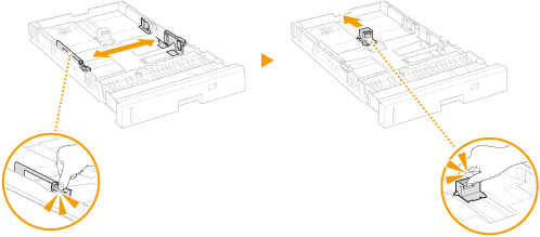 2 | 握住纸盒后端,滑动纸盒。 滑动纸盒,直至滑动开关返回至 位置。![]() |
