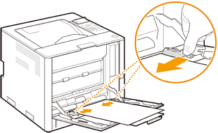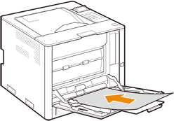 ![]() 在已打印纸张的反面打印(双面纸第2面)可以在已打印纸张的反面打印。压平已打印纸张的褶皱,然后将其插入多功能托盘,并使打印面朝上(已打印过的一面朝下)。然后选择纸张类型,并为<是否启用双面纸第2面的设置?>选择<是>。 仅使用本机打印过的纸张。 不得使用打印过的一面进行打印。 |