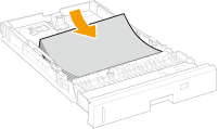 在已打印纸张的反面打印(双面纸第2面)可以在已打印纸张的反面打印。压平已打印纸张的褶皱,然后将其插入多功能托盘,并使打印面朝下(已打印过的一面朝上)。然后选择纸张类型,并为<是否启用双面纸第2面的设置?>选择<是>。 仅使用本机打印过的纸张。 不得使用打印过的一面进行打印。 |