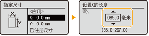 指定<X>边和<Y>边的长度。选择<X>或<Y>,使用数字键或