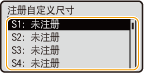 最多可以注册5个常用任意尺寸纸张。此处注册的纸张尺寸将显示在纸盒和多功能托盘的纸张尺寸选择屏幕上(