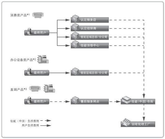 佳能(中国)实施废弃产品的回收再利用体制,您可以将废弃的复印机、传真机、打印机和耗材等产品通过佳能的认定销售或服务店转送至佳能公司进行回收。我们将对回收后的废弃产品按照中国的法律法规相关规定,通过佳能认定的政府环保机构指定的具备环境保护资质的处理企业进行正确的回收、再利用处理,确保节约资源,降低环境污染。
