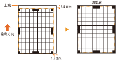 在以下示例中,由于需要将打印位置向上移动3.5 mm并向右移动1.5 mm,因此在纵向方向指定-3.5 mm,并在横向方向指定+1.5 mm。
