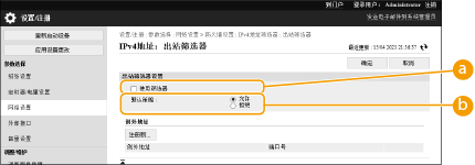 如果IP地址输入不正确,则可能无法从远程用户界面访问本机,在此情况下,您需要在操作面板中,将<IPv4地址筛选器> 或 <IPv6地址筛选器>中的 <出站筛选器>/<入站筛选器> 的 <使用筛选器> 设为 <关闭>。