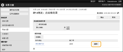 例外地址设置仅适用于从使用专用端口号的指定IP地址接收的通信。输入端口号,然后点击[添加]。每个IPv4/IPv6的例外地址最多可以注册50个端口。