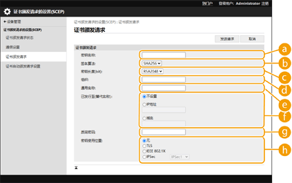 [质询密码:]在SCEP服务器端设置密码时,请输入请求数据 (PKCS#9) 中包含的质询密码,以请求颁发证书。