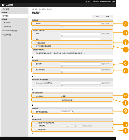uid | 是 | 1到32个字符 | 控制字符、单字节空格和以下字符: \ / : * ? | < > [ ] ; , = + @ " | ![]() | 必须在导入时输入。 是否可以使用“@”将视设置而定。配置用户登录方法和认证设备 |