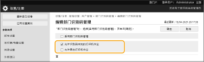 选中此复选框以接受来自不支持部门识别码管理的打印机驱动程序的打印作业和黑白打印作业。