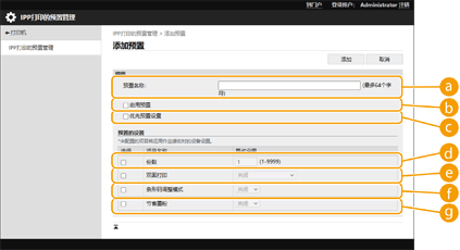 选中此复选框以便在预设中注册墨粉保存设置。可选择 [关闭] 或 [打开]。
