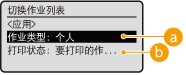 <切换作业列表>屏幕