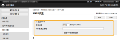 可以使用 SNTP 检查本机和注册服务器之间的通信状态。但是,只会确认通信状态,而不会进行时间调整。