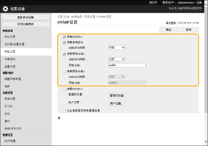 5 | 单击[网络设置] [SNMP设置]。 |