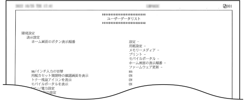 ユーザーデータリストには、ネットワーク設定の内容はプリントされません。 工場出荷時の設定から変更された項目には、設定値の横に「*」がついてプリントされます。 |