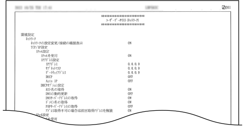 本機のネットワークに関する設定項目とその内容をリストで確認できます。アドレスフィルターやIPSecの設定状況など、セキュリティーに関する情報もプリントされます。