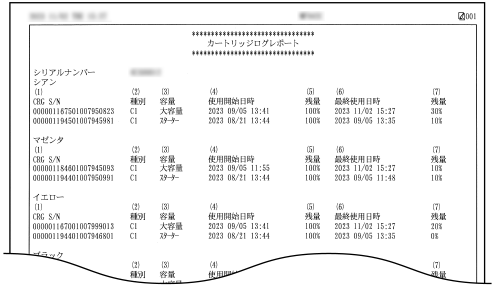 本機にセットされている消耗品の状態をレポートで確認できます。
