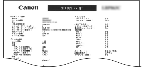工場出荷時の設定から変更された項目には、設定値の横に「*」がついてプリントされます。 以下の項目では、工場出荷時および設定値初期化時に本製品の固有情報から自動生成されて「*」がつきます。 IPv4ホスト名 IPv6ホスト名 mDNS名(mDNS設定) 動作中の通信速度(Ethernetドライバー設定) |