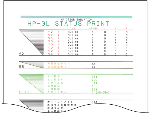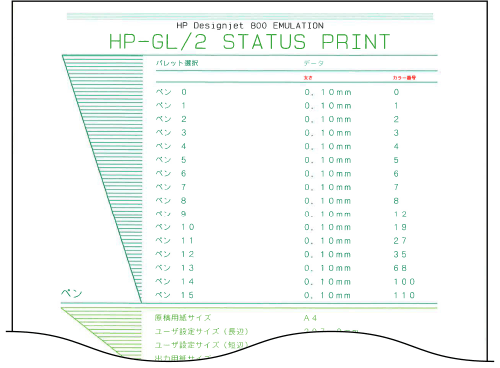 本機のHP-GL/2ユーティリティー設定項目とその内容のリスト、またはHP-GL/2ユーティリティーで使用できる代表的なパターンのサンプルを確認できます。