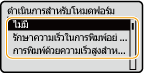 หากคุณตั้งค่า <เปิดใช้งานโหมดฟอร์ม> ไว้เป็น <เปิด(ขนาดไม่ตรงกับแหล่งกระดาษขนาดอิสระ: เปิด)> ตัวเลือก <ขนาดกระดาษไม่ตรงกับแหล่งกระดาษขนาดอิสระ> ใน <การตั้งค่าฟังก์ชัน> จะถูกตั้งค่าเป็น <เปิด>โดยอัตโนมัติ อย่างไรก็ตาม การตั้งค่าของ <เปิดใช้งานโหมดฟอร์ม> จะไม่เปลี่ยนแปลงเมื่อคุณตั้งค่า <ขนาดกระดาษไม่ตรงกับแหล่งกระดาษขนาดอิสระ> ใน <การตั้งค่าฟังก์ชัน> เป็น <เปิด> |
