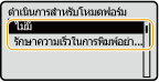 หาก <เปิดใช้งานการตั้งค่าสำหรับ ด้านที่ 2 ของกระดาษ 2 ด้านหรือไม่> ปรากฏขึ้น ให้เลือก <ใช่> เพื่อพิมพ์ที่ด้านหลังของกระดาษที่พิมพ์ด้านหน้าไปแล้ว
