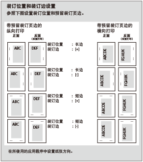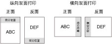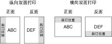 此参数确定是沿纸张的长边还是短边进行装订。装订双面打印纸张时,会自动调整图像方向以正确布局。