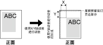 增加此设置值使图像沿X轴方向向纸张的右边移动。减小此设置值使图像沿X轴方向向纸张的左边移动。