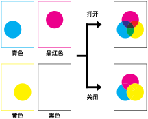 将根据所选输出配置文件中的设置,使用CMYK碳粉来打印黑色图形。对于某些作业,最好将这个选项设为[关闭]。