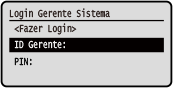 Quando a ID de Gerente de Sistema está configurada, a tela de login é exibida para operações que exigem privilégios de administrador. Digite a ID e o PIN do Gerente de Sistema para fazer login.