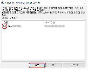 ](Canon MF Network Scanner Selector)를 클릭합니다.
