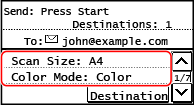 | | You can scan an original and send the scanned data by e-mail as an attachment. Just like when sending a regular e-mail, you can add a subject and message and specify multiple destinations. |