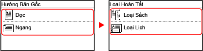 2 | Chọn [1->2 Mặt] và nhấn  . Màn hình [Hướng Bản Gốc] được hiển thị. |