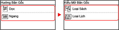Thiết đặt hướng bản gốc và sao chụp loại mở, nếu cần.